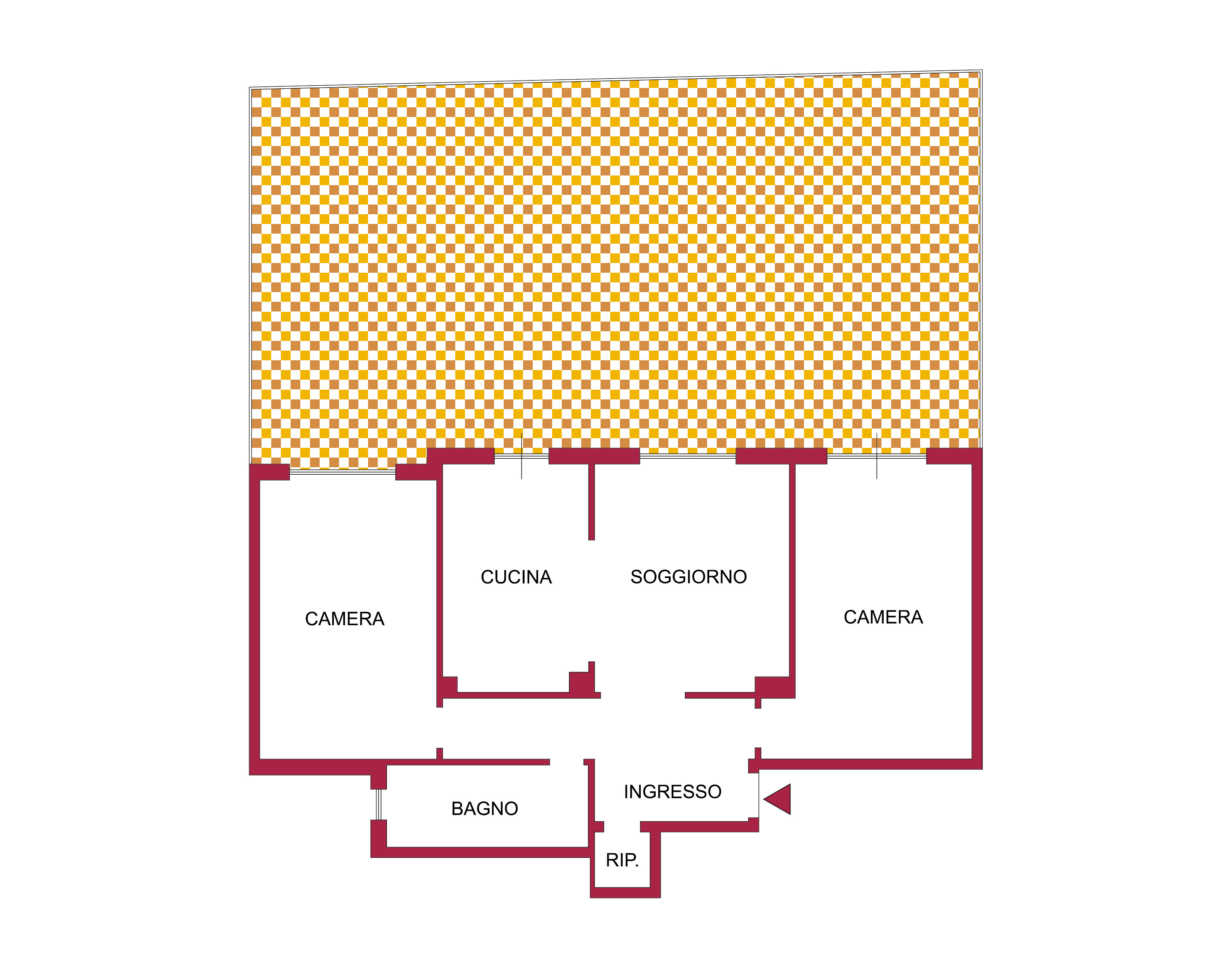 L’immobile si compone di un ingresso, soggiorno con cucina, 2 camere matrimoniali, bagno e ripostiglio.