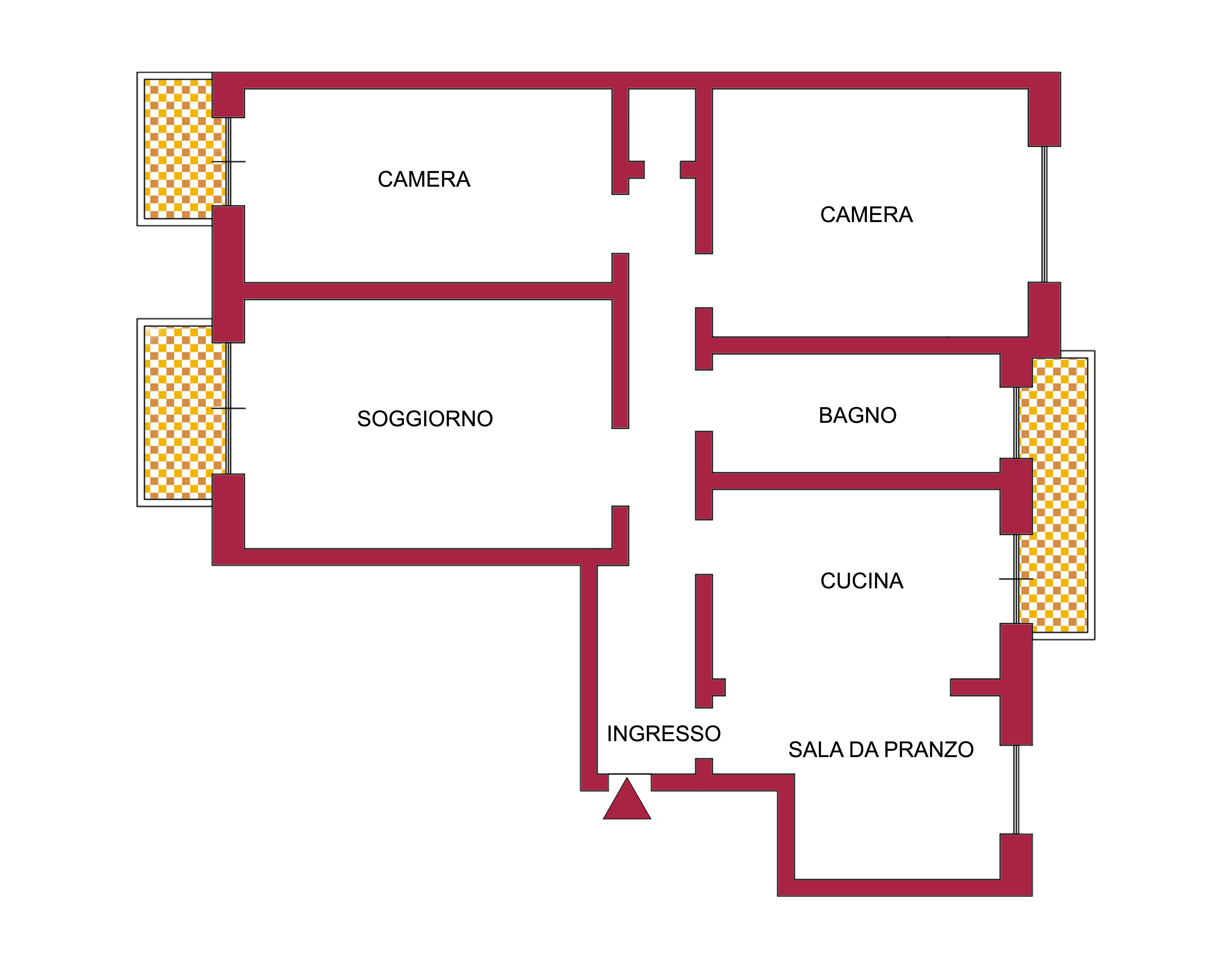 L’immobile è composto da un ingresso, soggiorno, cucina con sala da pranzo (volendo 3° camera), 1 camera matrimoniale, 1 camera singola, bagno, ripostiglio e 3 poggioli.