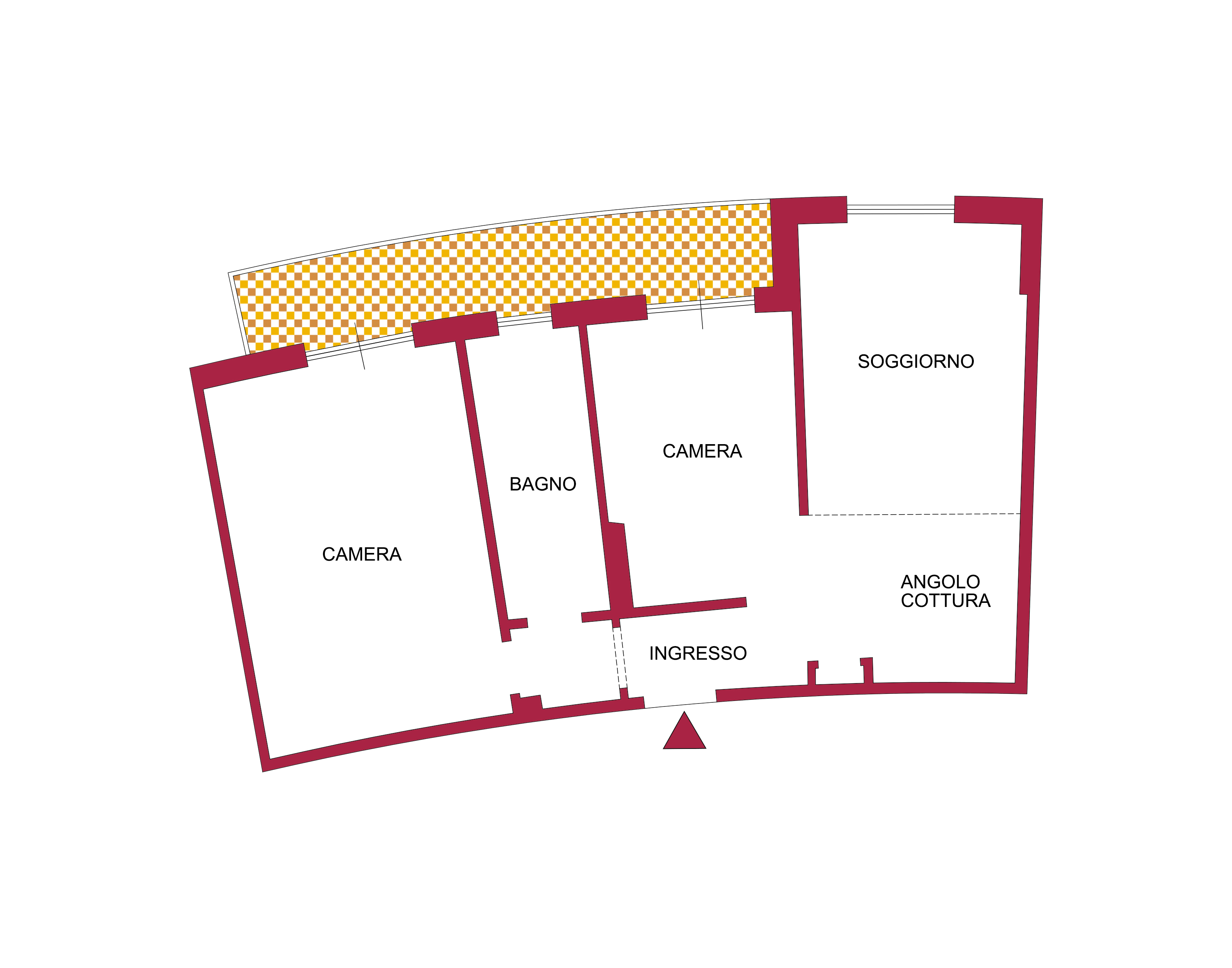 L’immobile si compone di un ingresso, soggiorno con angolo cottura, 2 camere, un bagno ed una POGGIOLATA VIVIBILE.