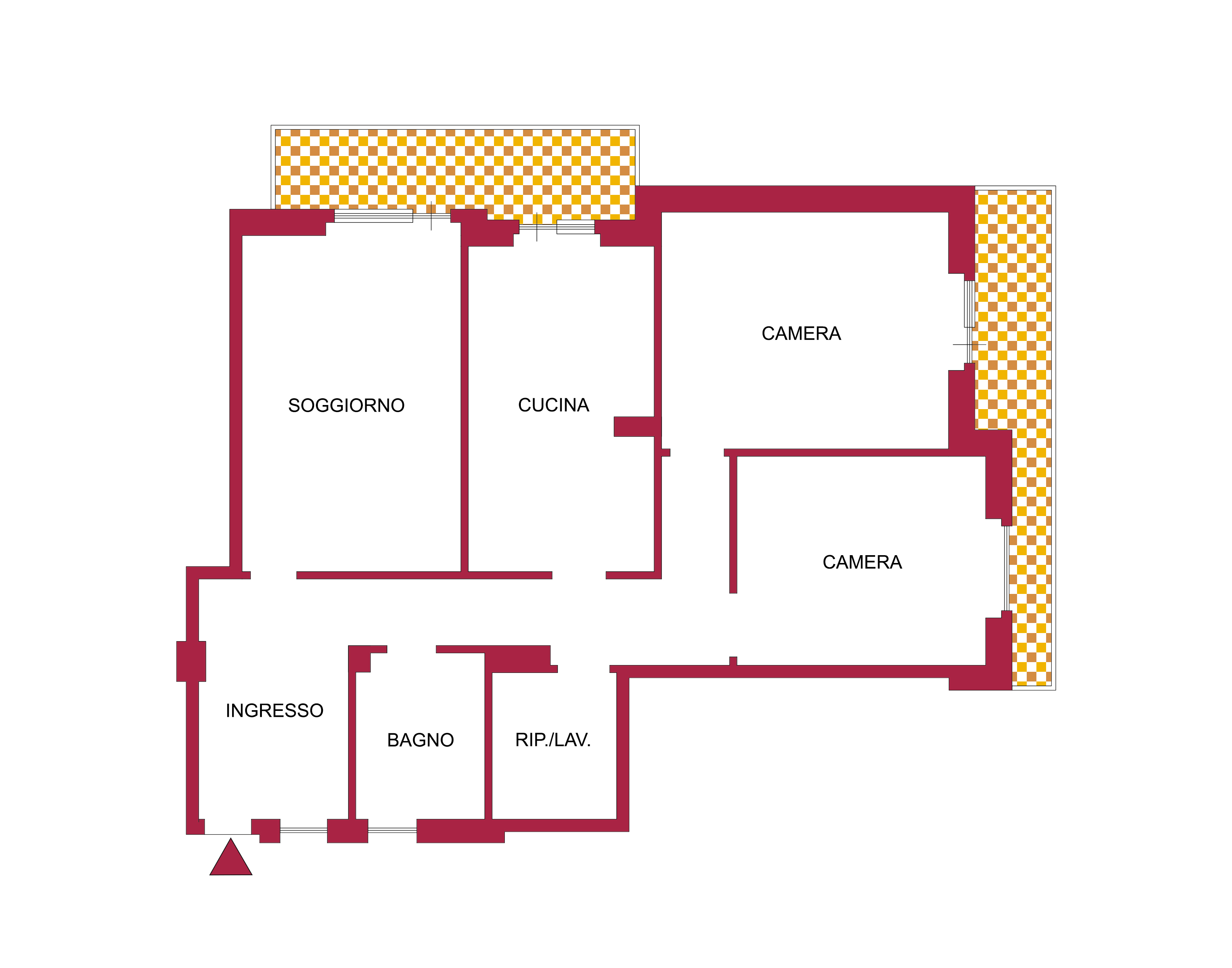L’immobile si compone di un ingresso, soggiorno, cucina (arredata), 1 camera matrimoniale, 1 camera media, un bagno, un ripostiglio/lavanderia (volendo 2° bagno) e 2 POGGIOLI.