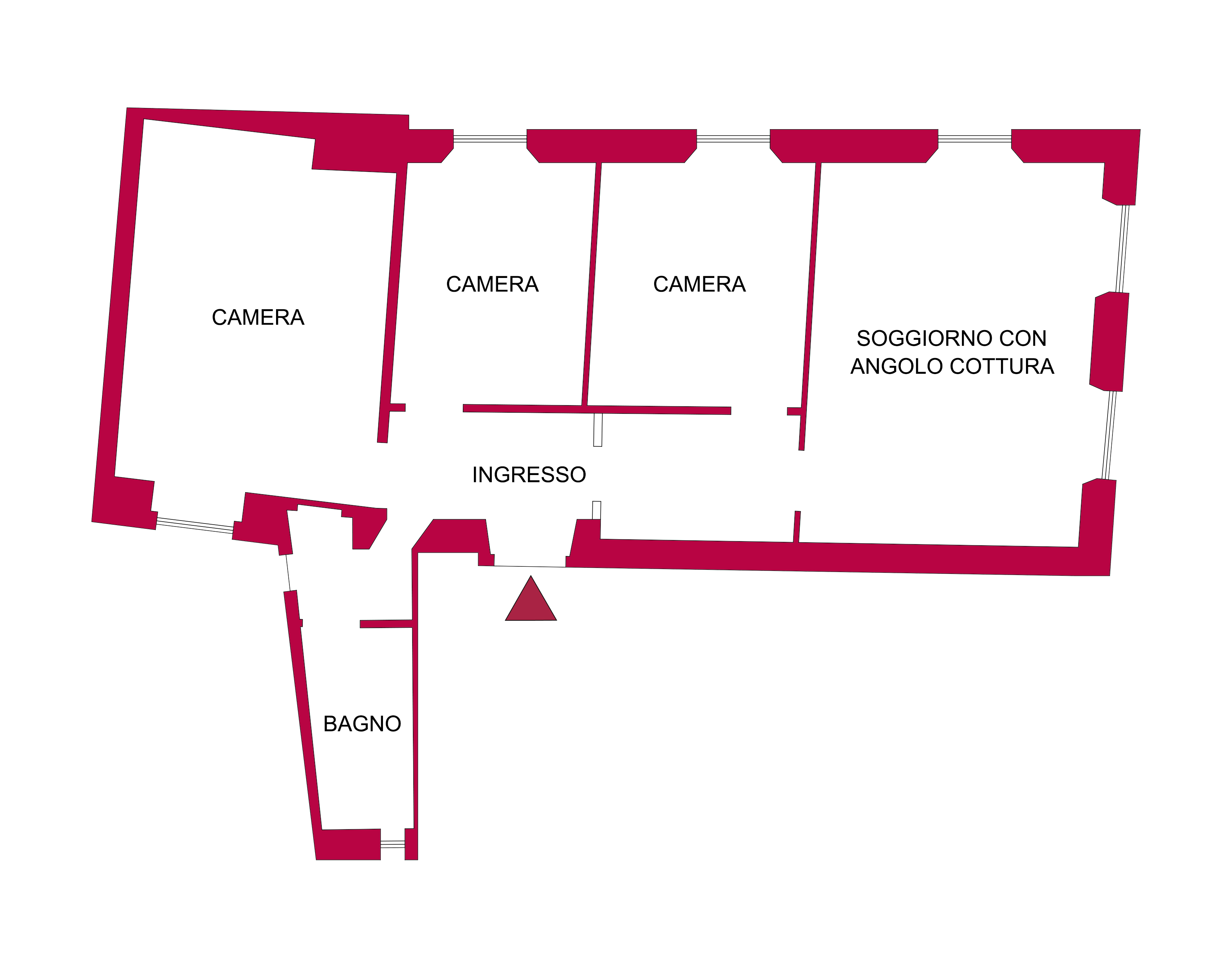 L’immobile si compone di un ingresso, un soggiorno con angolo cottura, 1 camera matrimoniale, 1 camera media, 1 camera singola, un bagno con antibagno.