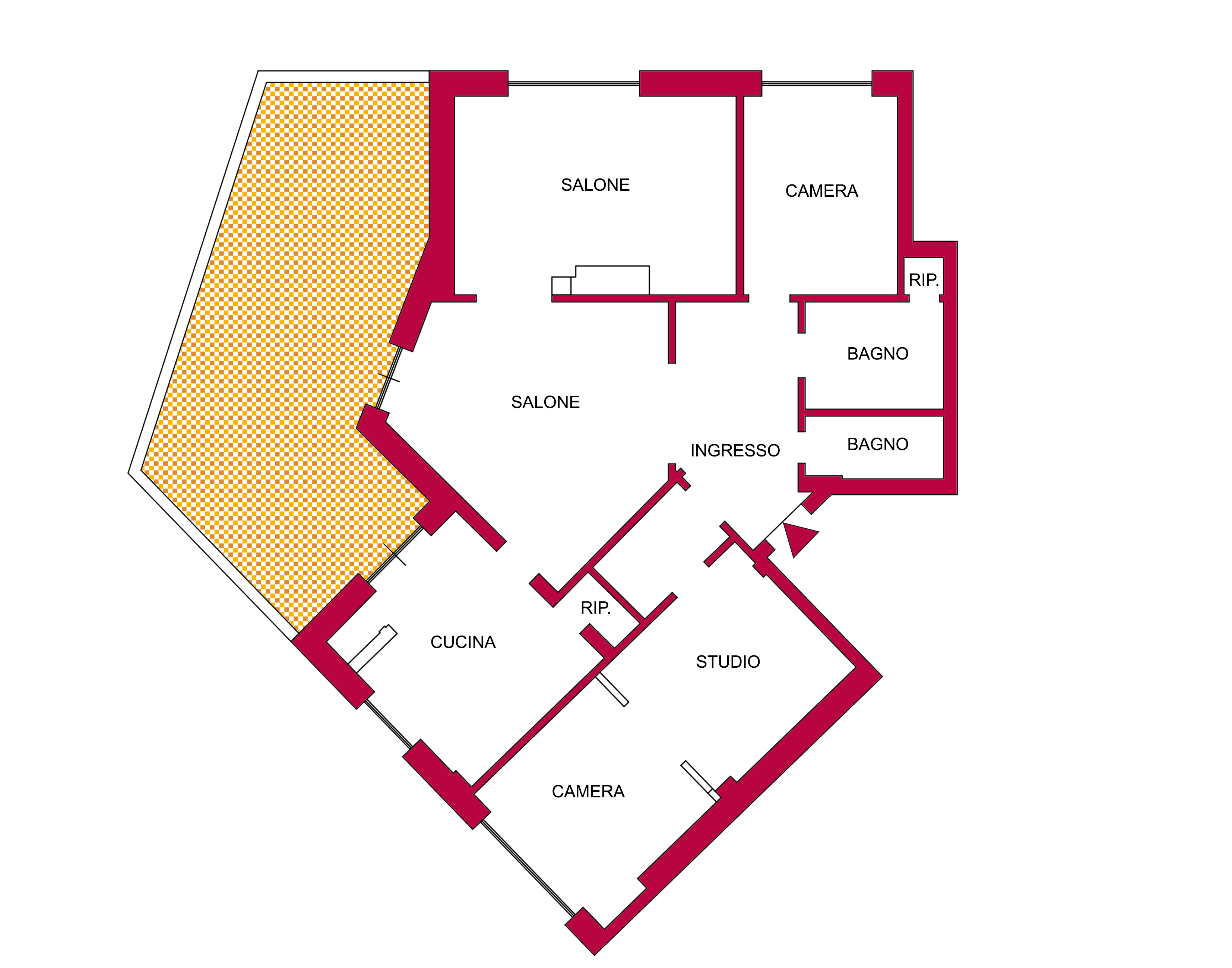L’immobile si compone di un ingresso alla genovese, un salone doppio con parquet, una cucina con ripostiglio, 1 camera matrimoniale con annesso studio, 1 camera media, 1 bagno principale ed un bagno di servizio.