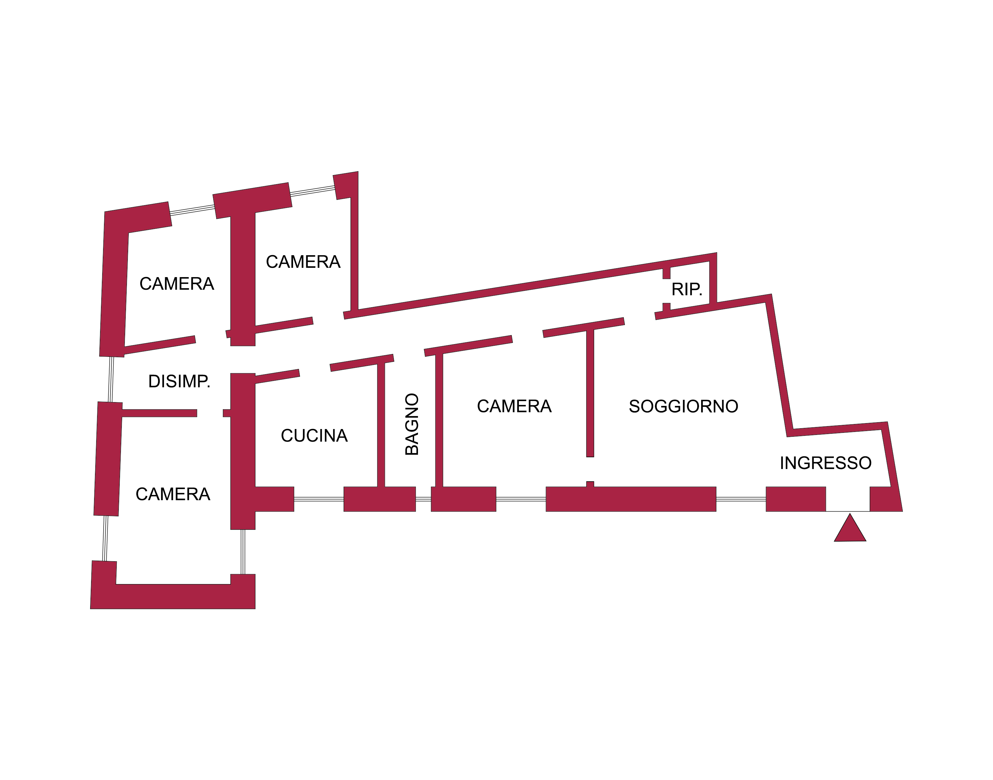 L’immobile si compone di un ampio ingresso affacciato sul soggiorno, cucina, 4 camere, un bagno, un ripostiglio ed un disimpegno.