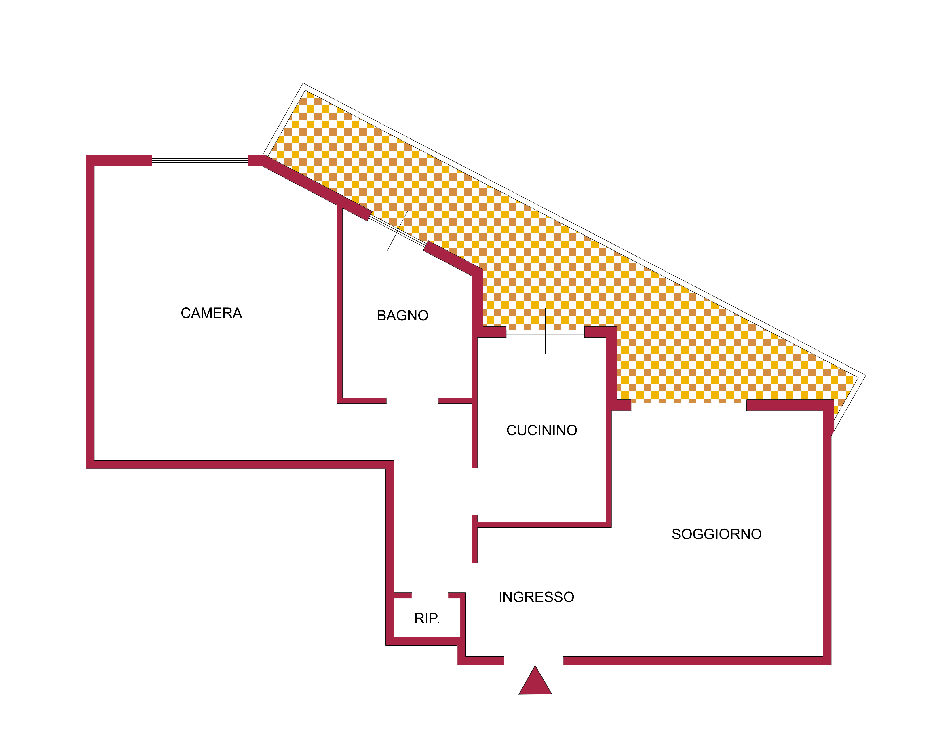 L’immobile si compone di un ingresso affacciato sul soggiorno, cucinino, 1camera matrimoniale con armadio a muro, bagno e ripostiglio.