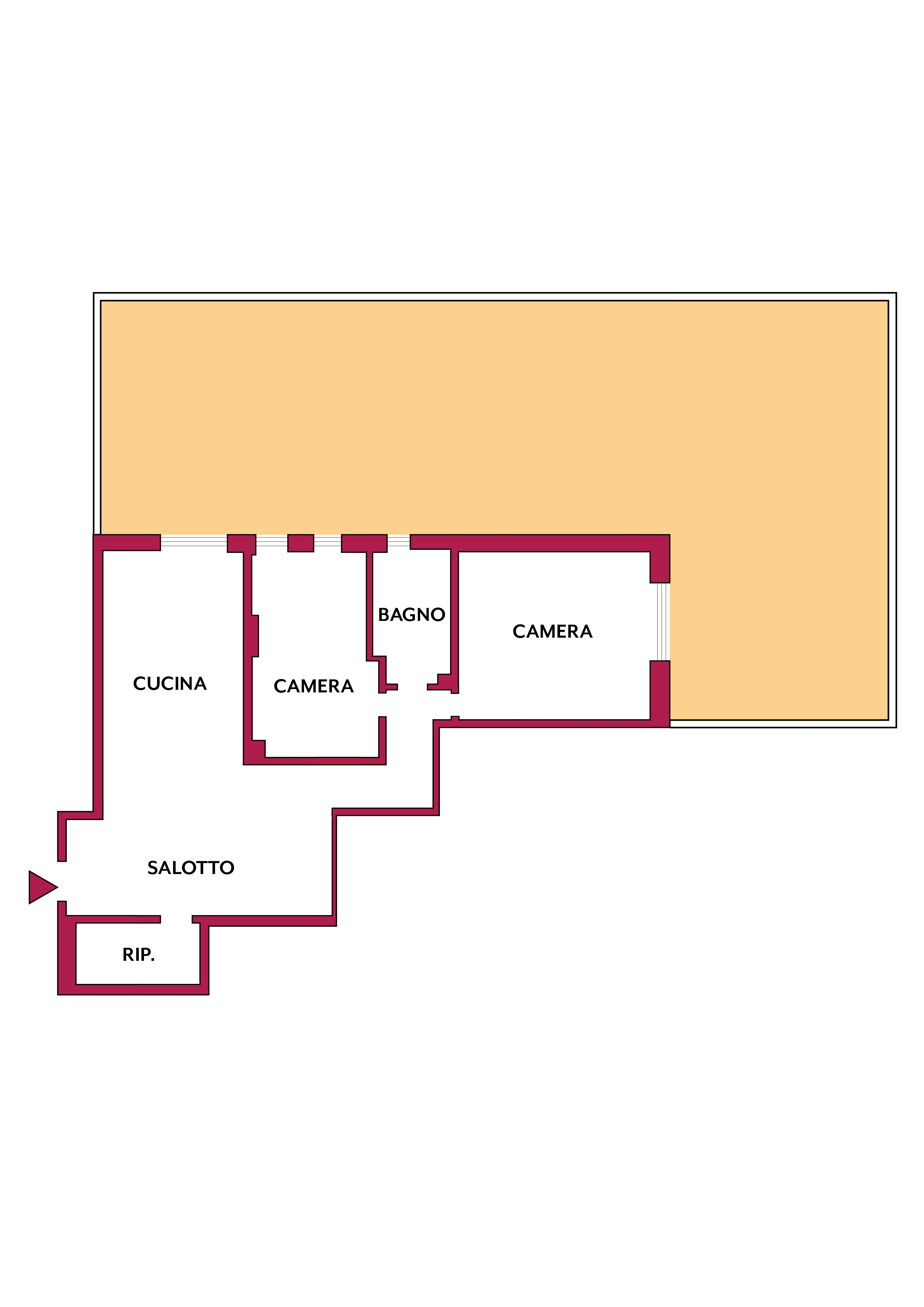 È affacciato su un GRANDE TERRAZZO PENSILE di mq. 130 circa, ideale per pranzare all’aria aperta e trascorrere momenti di assoluta tranquillità.
