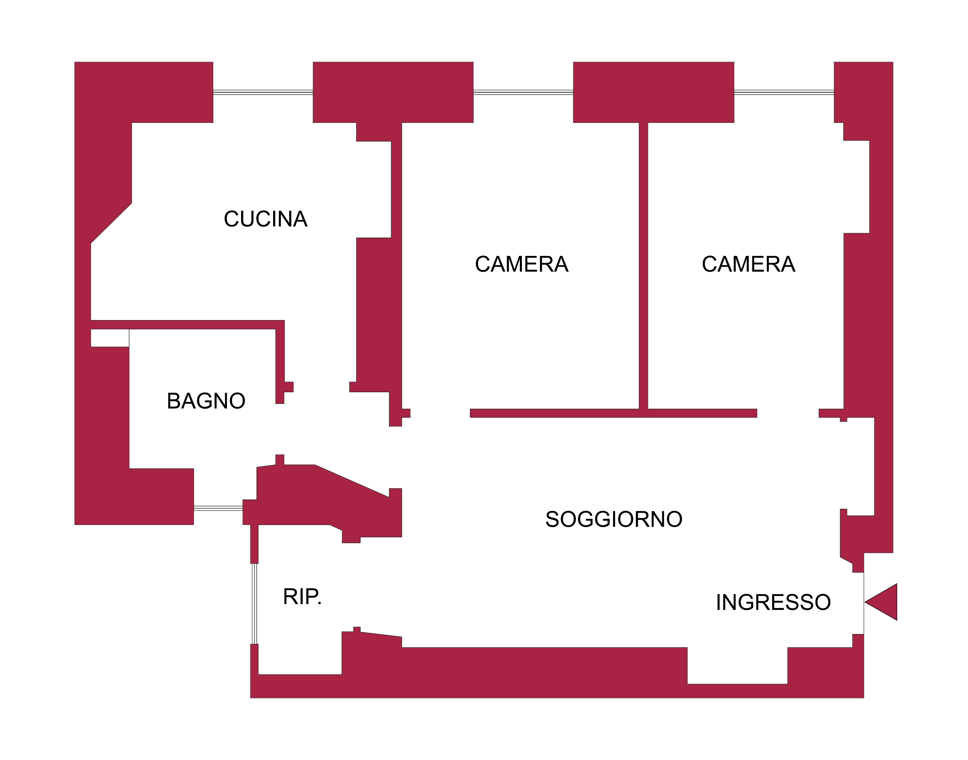 L’ingresso affaccia su un luminoso salone, cucina abitabile, due camere, bagno ed un poggiolo chiuso ad uso ripostiglio.